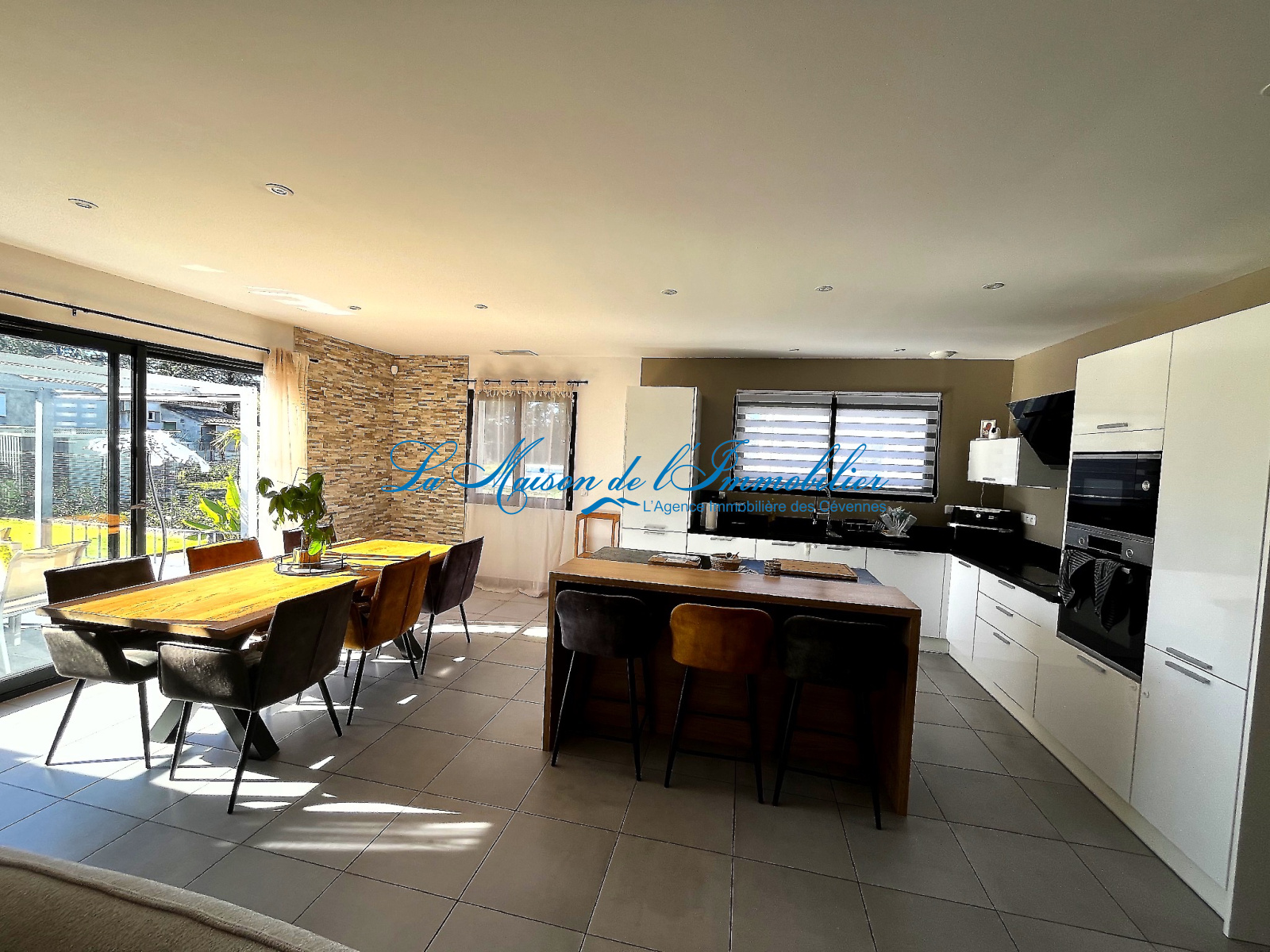 Allègre-les-Fumades (30500)Entre ALES et ST AMBROIX, à proximité ds Thermes des fumades, jolie villa contemporaine récente de 4 pièces se composant d'une grande pièce de vie lumineuse de 53 m² avec cuisine ouverte entièrement équipée.