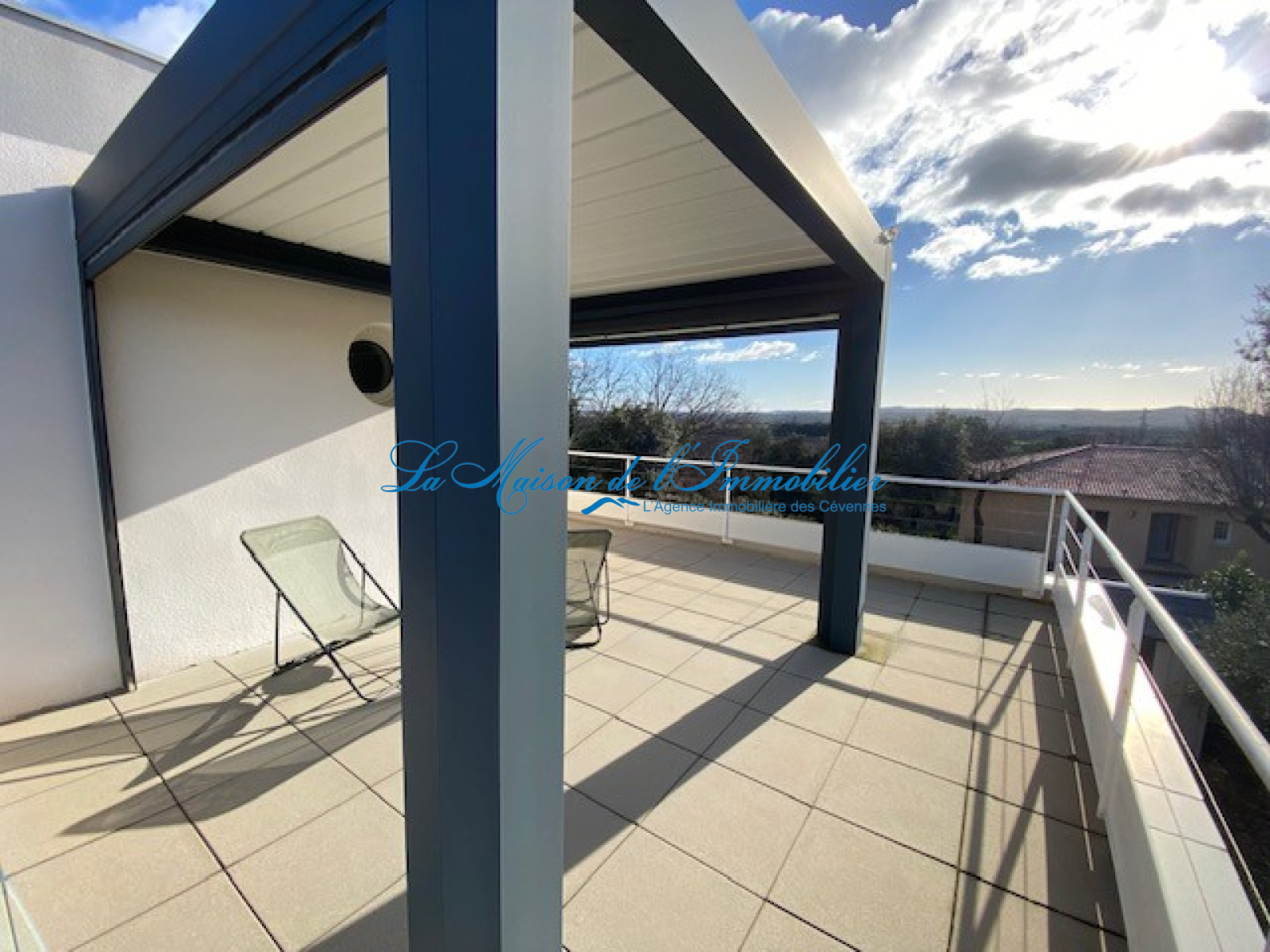 A l'étage, une suite parentale composée d'un dressing, salle de bain et toilettes offre une magnifique sur l'ensemble de la propriété grâce à sa terrasse de plus de 30m2 avec sa pergola bio climatique.