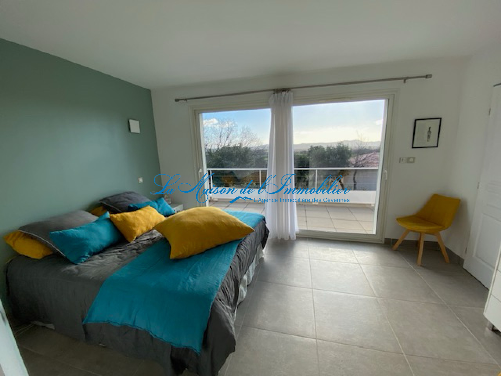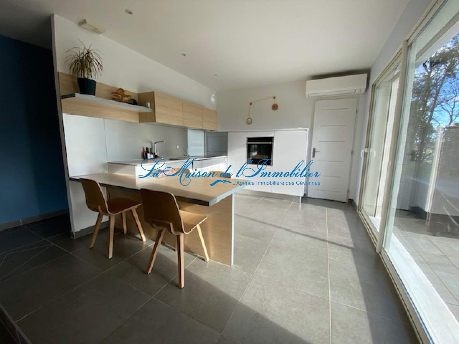 La cuisine est ouverte sur le séjour et équipée. Un couloir dessert deux chambres avec placards coulissants, une salle de bain commune au deux chambres. Une troisième chambre spacieuse a un accès terrasse.