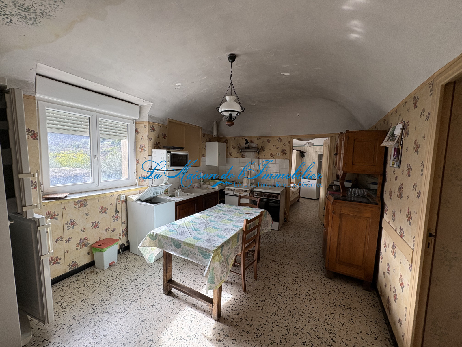 Au rez-de-chaussée, plusieurs caves voûtées. A l'étage, une véranda dessert une première partie à rénover comprenant une cuisine, 4 chambres, une salle d'eau et un WC indépendant.