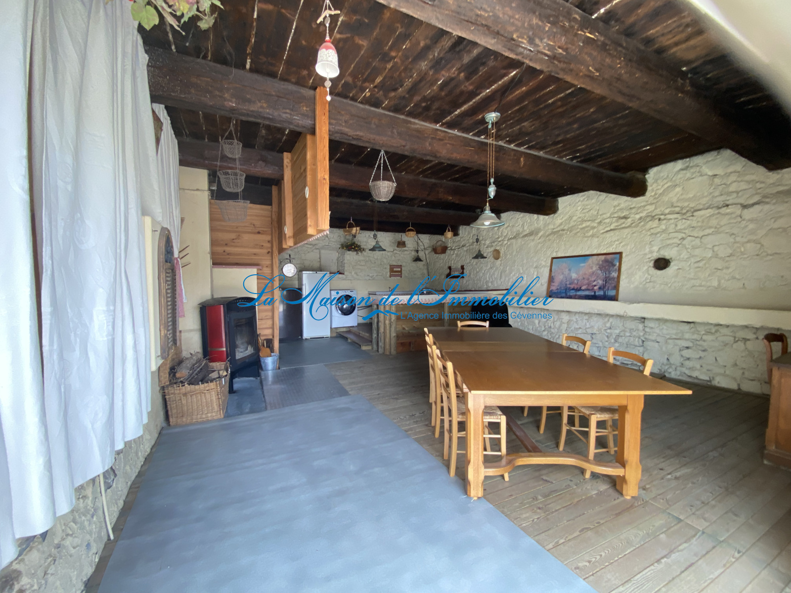 Une grande pièce de 60 m2, avec coin cuisine et poêle à bois Godin, dispose d’une entrée indépendante mais est aussi reliée à la maison principale.