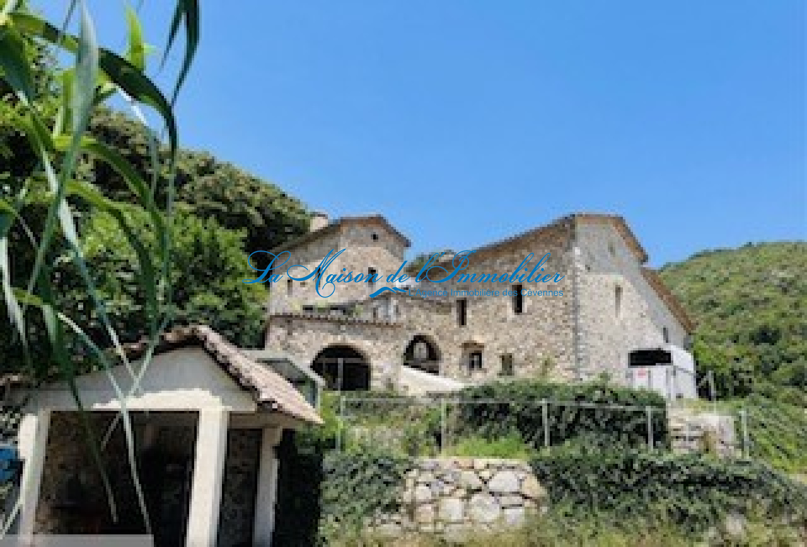 Proche de Lasalle, beau mas rénové avec gite sur 16875 m² avec sources, piscine et ses dépendances.