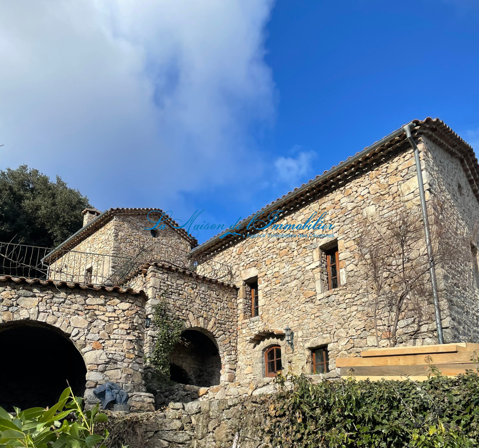 Lasalle (30460)Rare, beau mas cévenol de 253 m² habitable entièrement rénové, sans vis-à-vis et isolé avec vue panoramique qui se compose de 6 pièces, en rez-de-jardin une chambre avec sa salle d’eau et deux buanderies.