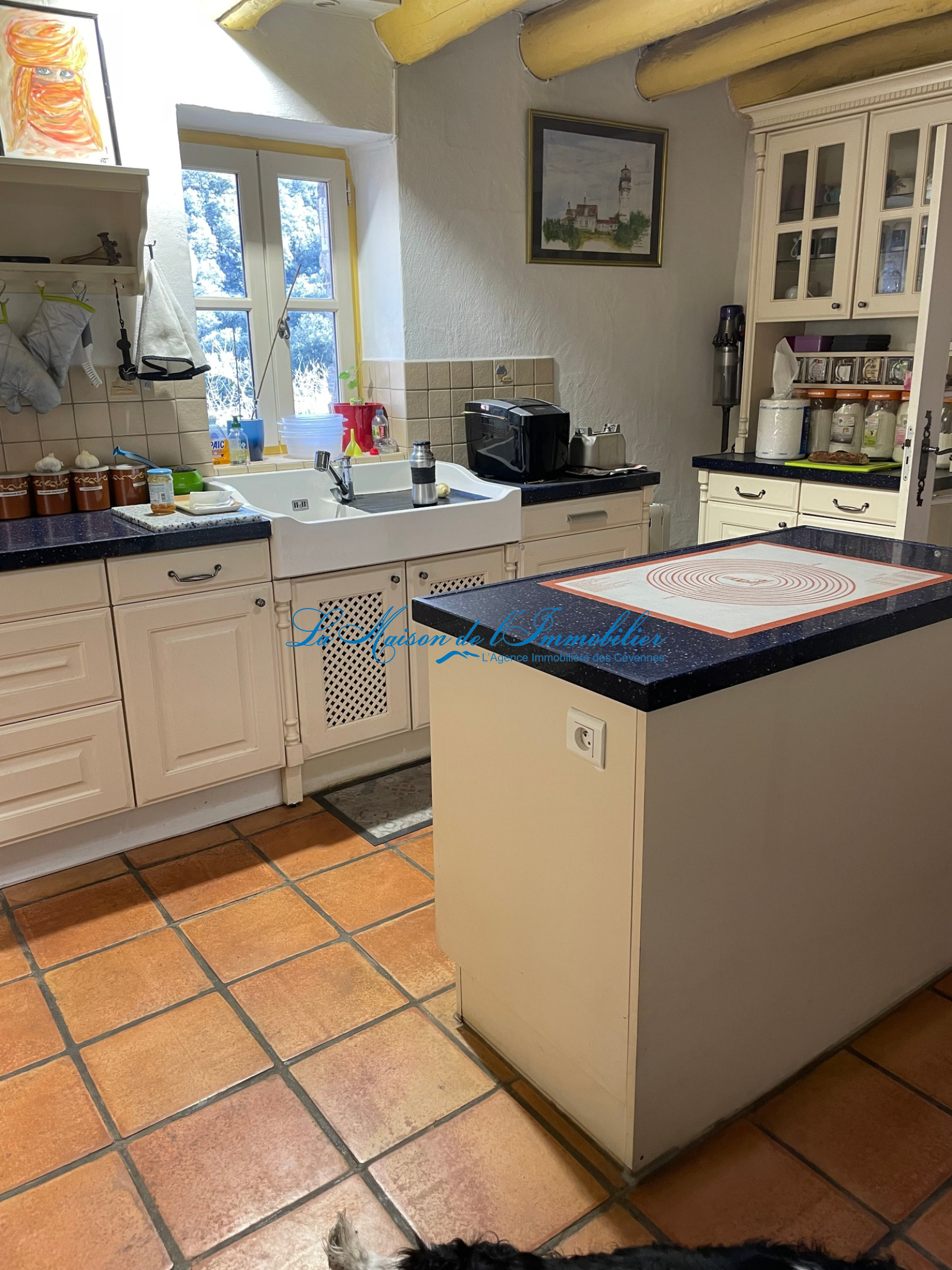 Au rez-de-chaussée, un beau séjour avec sa cheminée et ses charpentes, une cuisine équipée et aménagée, la salle à manger avec son poêle à bois et une véranda, idéal pour les belles journées à la mi saison.