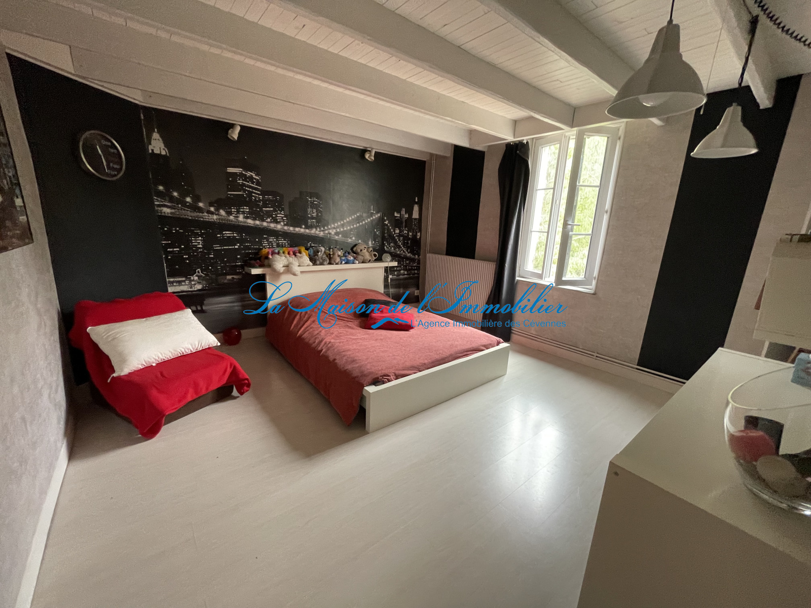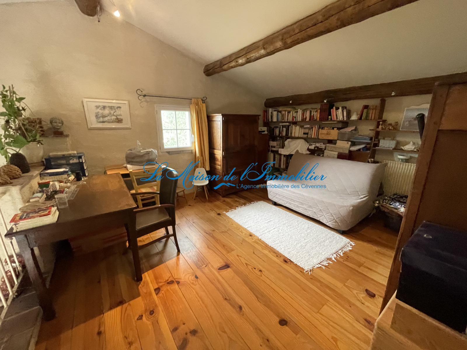 Au 1er étage vous trouverez 2 Chambres et un bureau en mezzanine avec vue sur la charpente apparente du