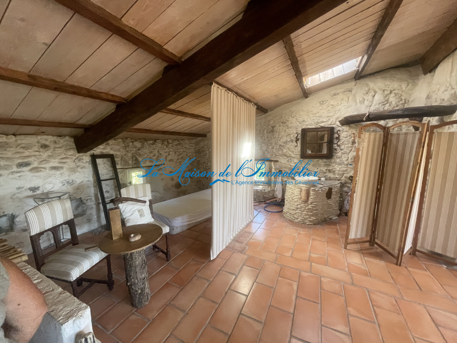 Mialet (30140)Charmante maison de village en pierres avec vue sur le gardon, au calme se composant